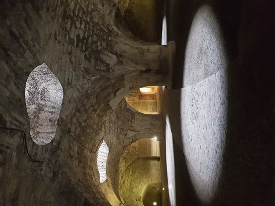 Le Munot fait partie des incontournables. Depuis la rue principale (Unterstadt) emprunter un escalier au milieu des vignes. On y produit le vin d’honneur de la Ville depuis 1913. Arrivé en haut, on est stupéfait à l’entrée de cette forteresse (1563). Une immense salle voutée baigne dans une douce pénombre (photo). Des spectacles de théâtre, de danse et de musique y sont donnés à l’occasion. Un bel escalier circulaire permet d’accéder à la gigantesque terrasse circulaire – la vue est à couper le souffle à 360°, on y voit toute la ville et le Rhin dérouler ses méandres en amont et en aval. En 1799, le Munot est occupé par les troupes françaises en guerre contre l’Autriche (deuxième guerre de coalition). Selon le Dictionnaire historique, l’édifice était endommagé et inutile, sa valeur militaire fut de tout temps modeste, servit dès lors de carrière avant d’être restauré au 19e.