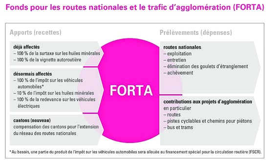 Le 12 février prochain, le peuple et les cantons trancheront, après vingt ans de débats politiques, la création d’un fonds pour les routes nationales et le trafic d’agglomération (FORTA), inscrit dans la Constitution fédérale et de durée illimitée.